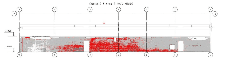 Опционально был подготовлен и передан отчет с анализом ровности поверхностей стен и перекрытий, который можно использовать для определения фронта работ по выравниванию стен и поверхностей, включая точное определение объемов расходуемых материалов.